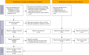 - Page MJ, McKenzie JE, Bossuyt PM, et al. The PRISMA 2020 statement: An updated guideline for reporting systematic reviews. Int J Surg 2021;88:105906. [Crossref] [PubMed]